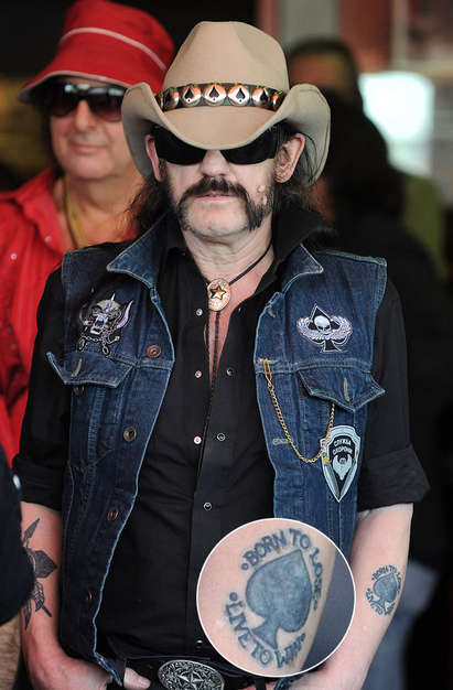 Lemmy Kilmister of Motorhead — “Tattooing Lemmy Kilmister from Motorhead was awesome for me. I’m a big Motorhead fan. I actually redid some tattoos that he got over 25 years ago, back in the day. They were kind of blurry due to age, and we just spruced them up and made them awesome and look brand-spanking new. One of them was an ace of spades, and it said ‘Born to Lose.'”